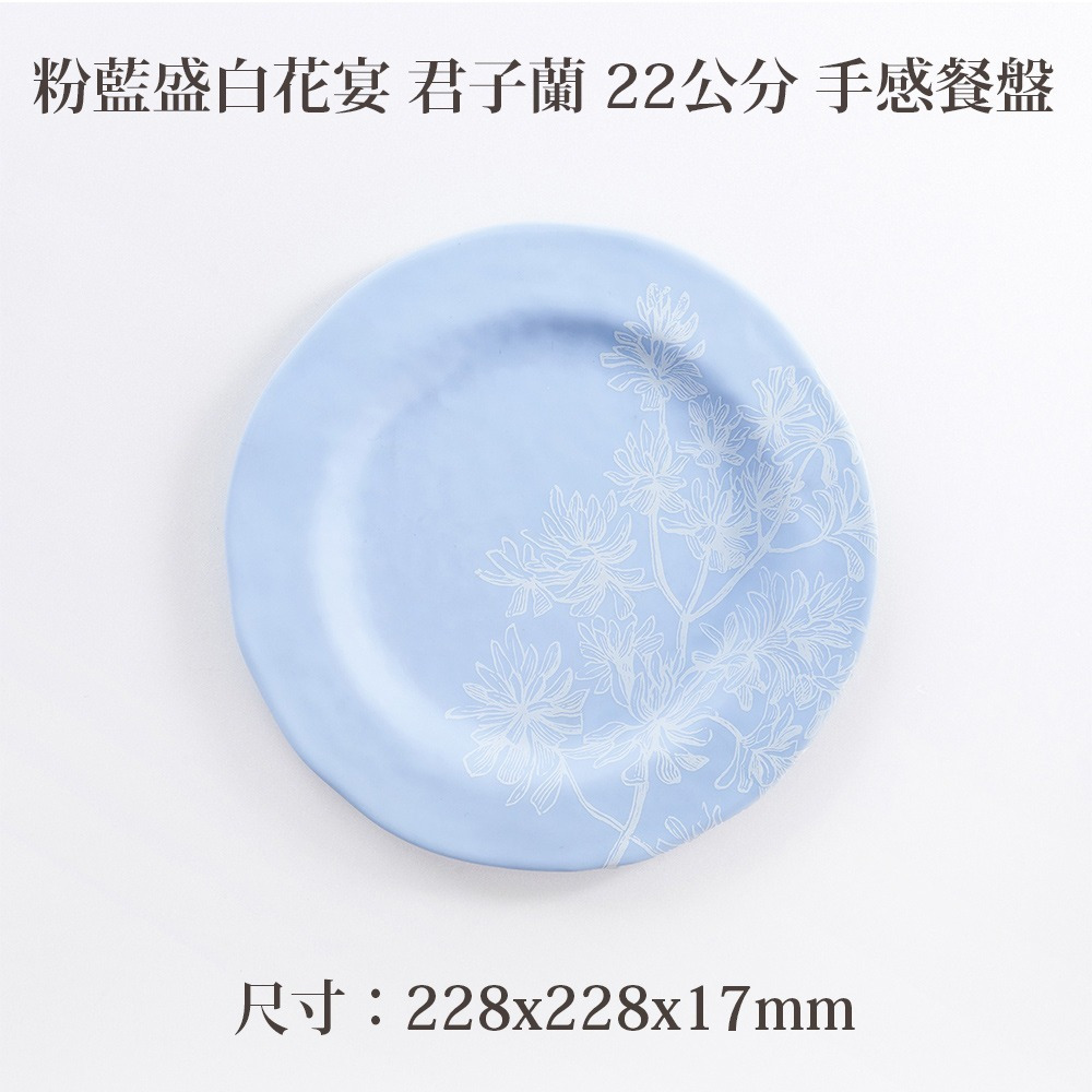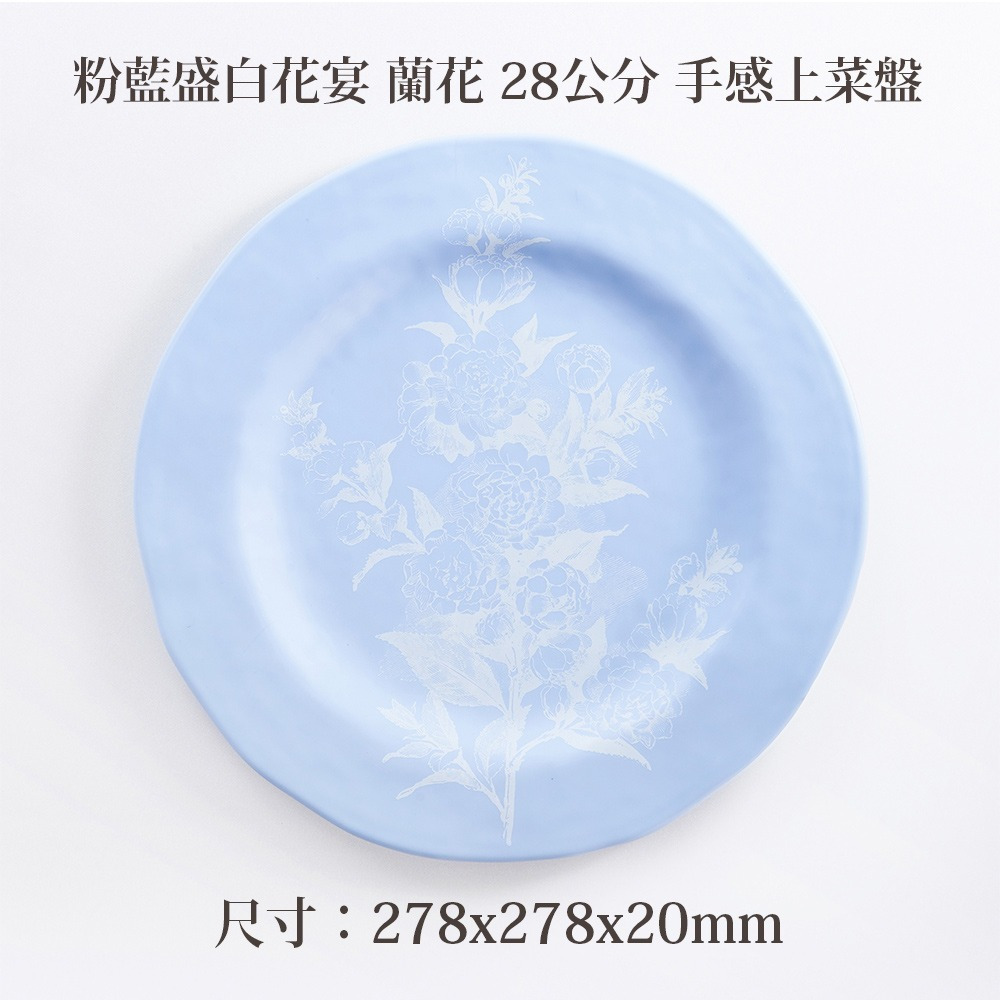 Vitamin M粉藍盛白花宴 蘭花 28公分 手感上菜盤