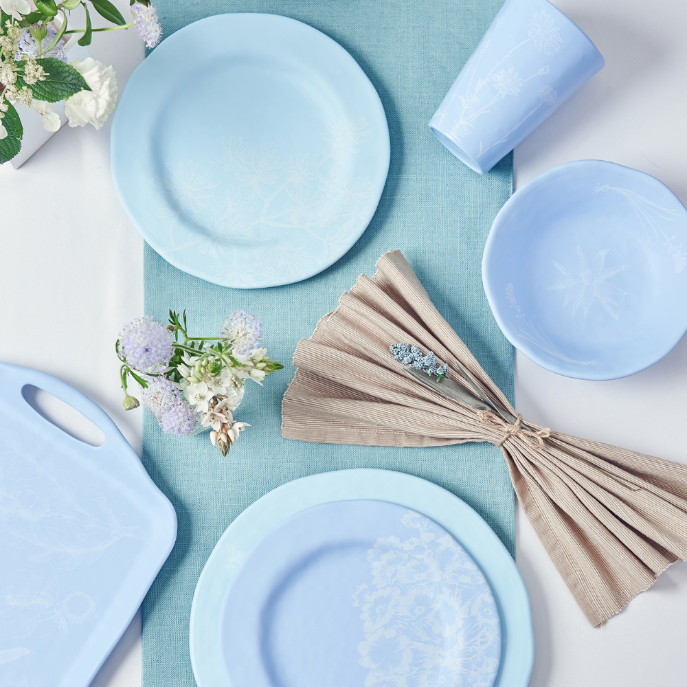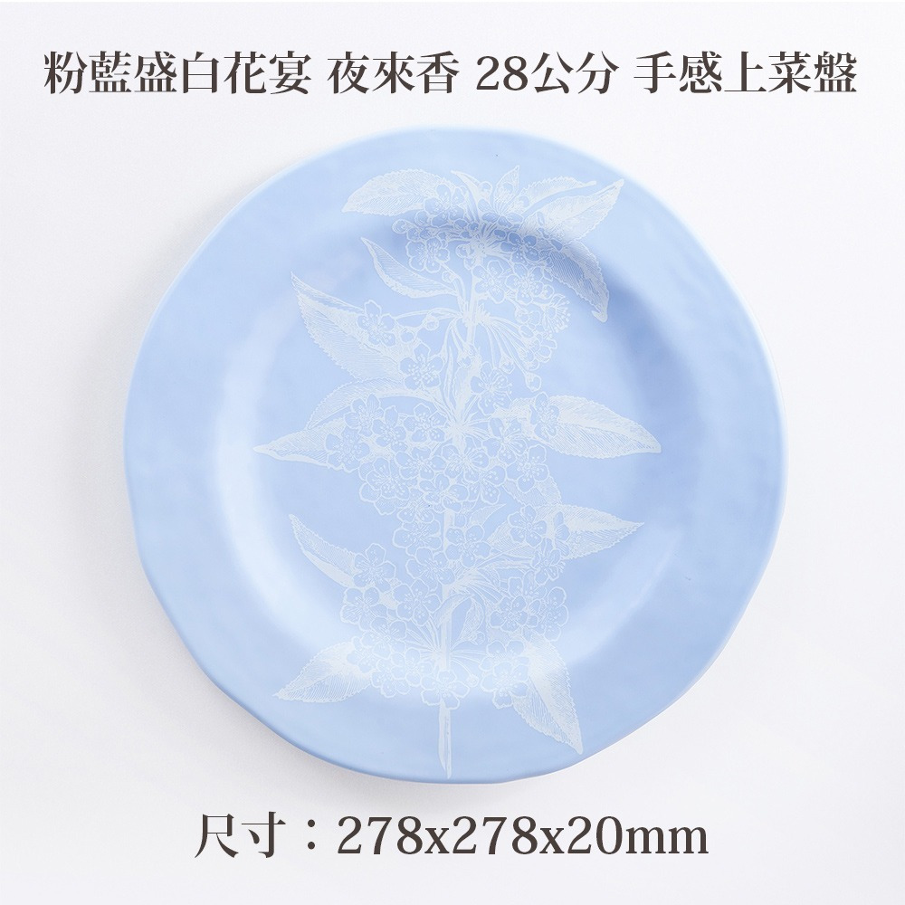 Vitamin M粉藍盛白花宴 夜來香 28公分 手感上菜盤