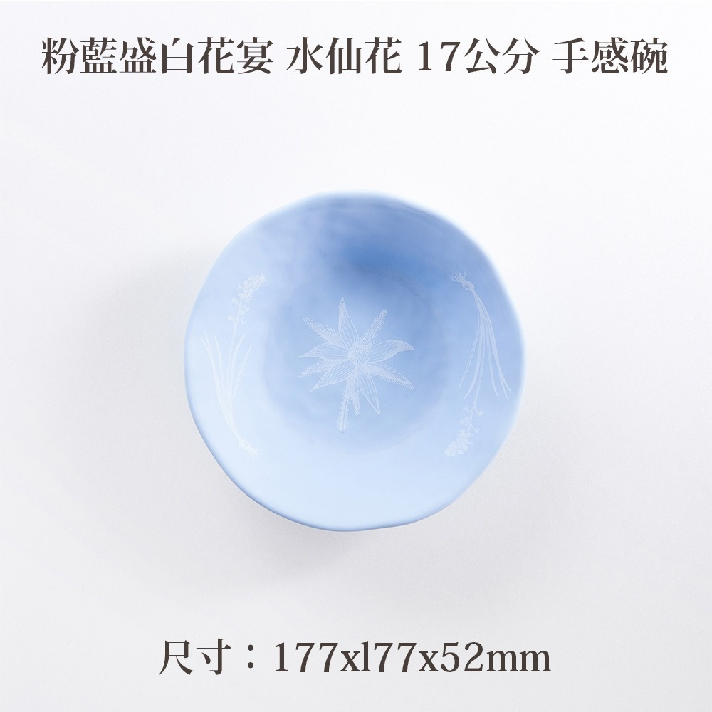 -Vitamin M粉藍盛白花宴 水仙花 17公分 手感碗