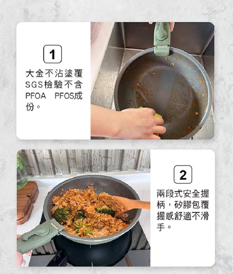 直火烹飪時,建議將可拆式把手取下,以免燒到把手。