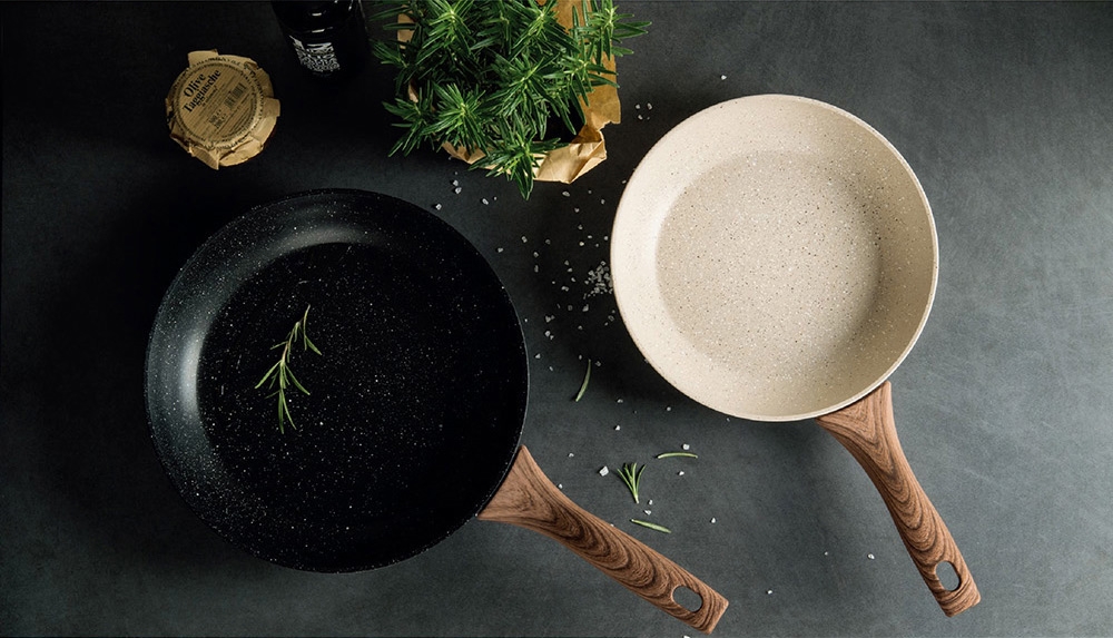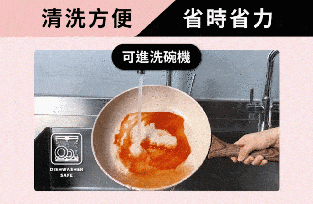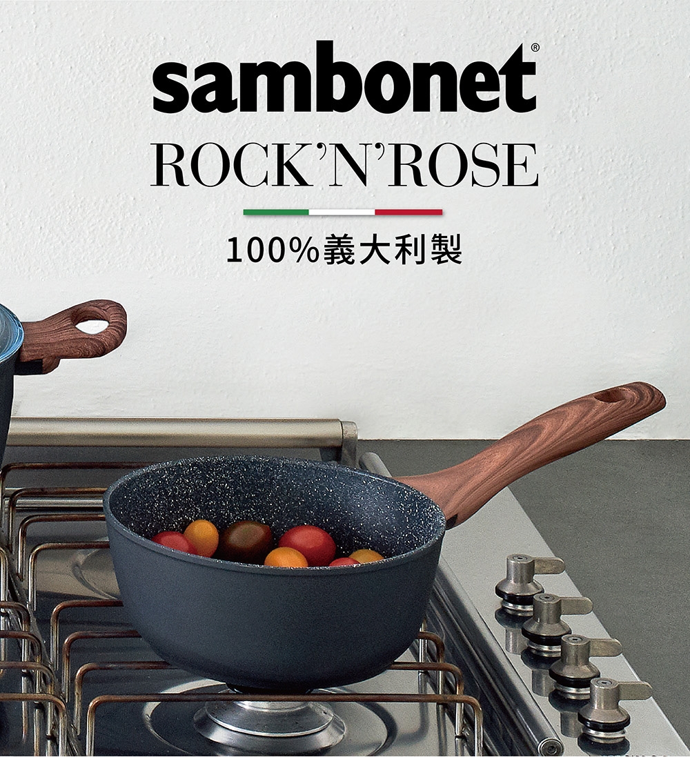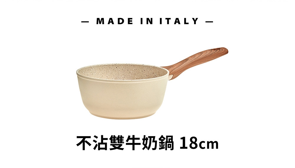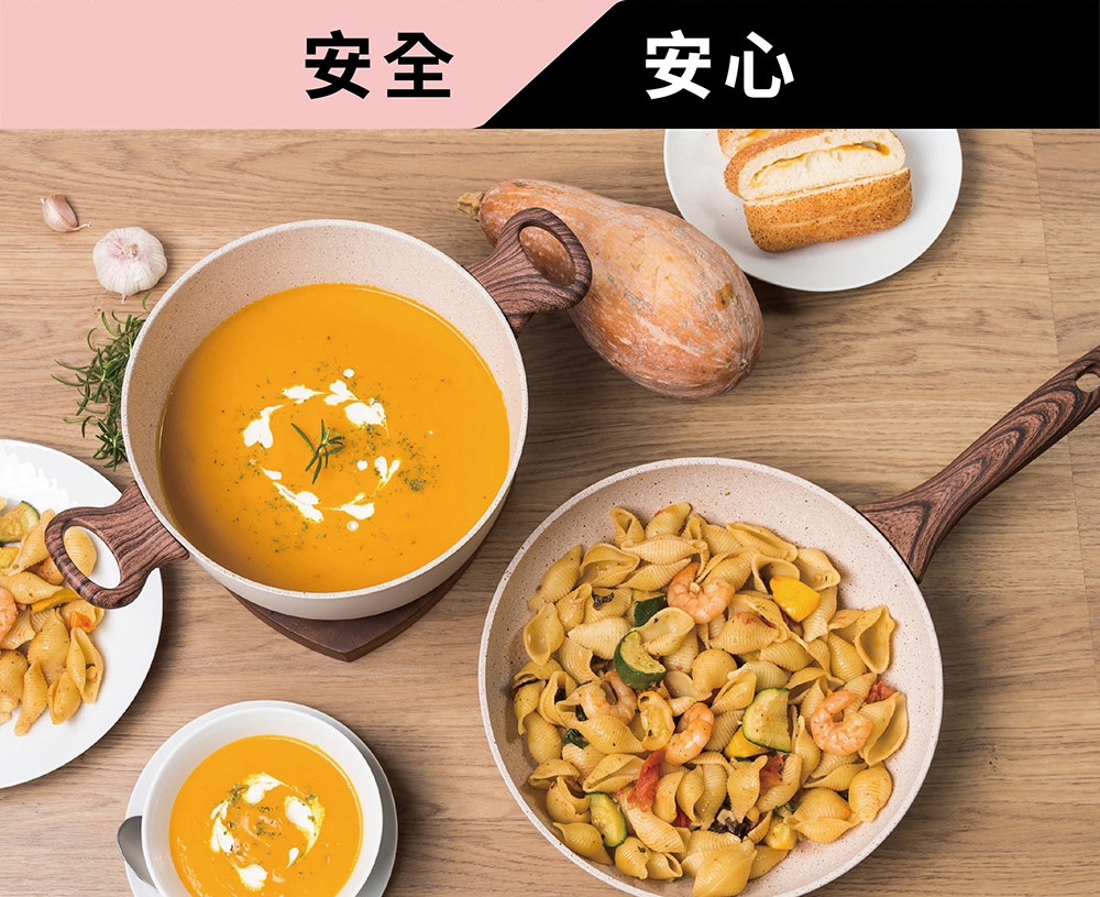 材質:本體 / 鋁/QUARZOTEK五層礦物不沾塗層(符合歐洲鍋具安全規範,不含鎳、PFOA、重金屬等有害物質) + 電木把手(木紋) / 酚醛樹脂