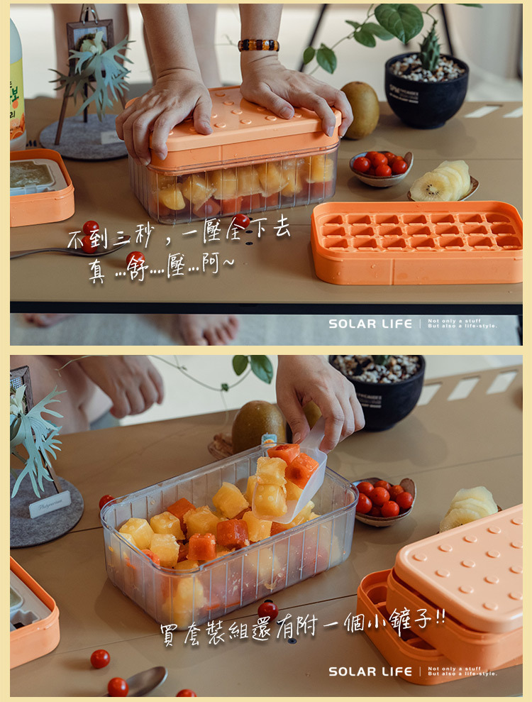 款式:單層冰塊盒、單層冰棒盒、冰塊盒+儲冰盒+上蓋、冰塊盒+冰棒盒+儲冰盒+上蓋 材質:塑料、矽膠 內容:上蓋 x 1、冰塊盒 x 1、冰棒盒 x 1、儲冰盒 x 1、冰塊鏟 x 1