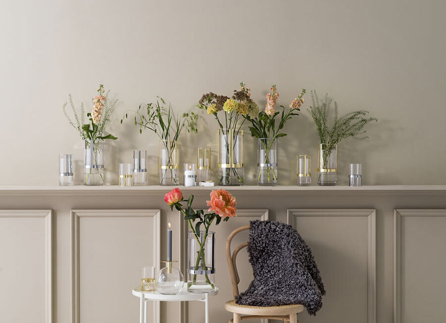 Top 花器由口吹玻璃和金屬製成,這是一個簡單但裝飾性強的設計