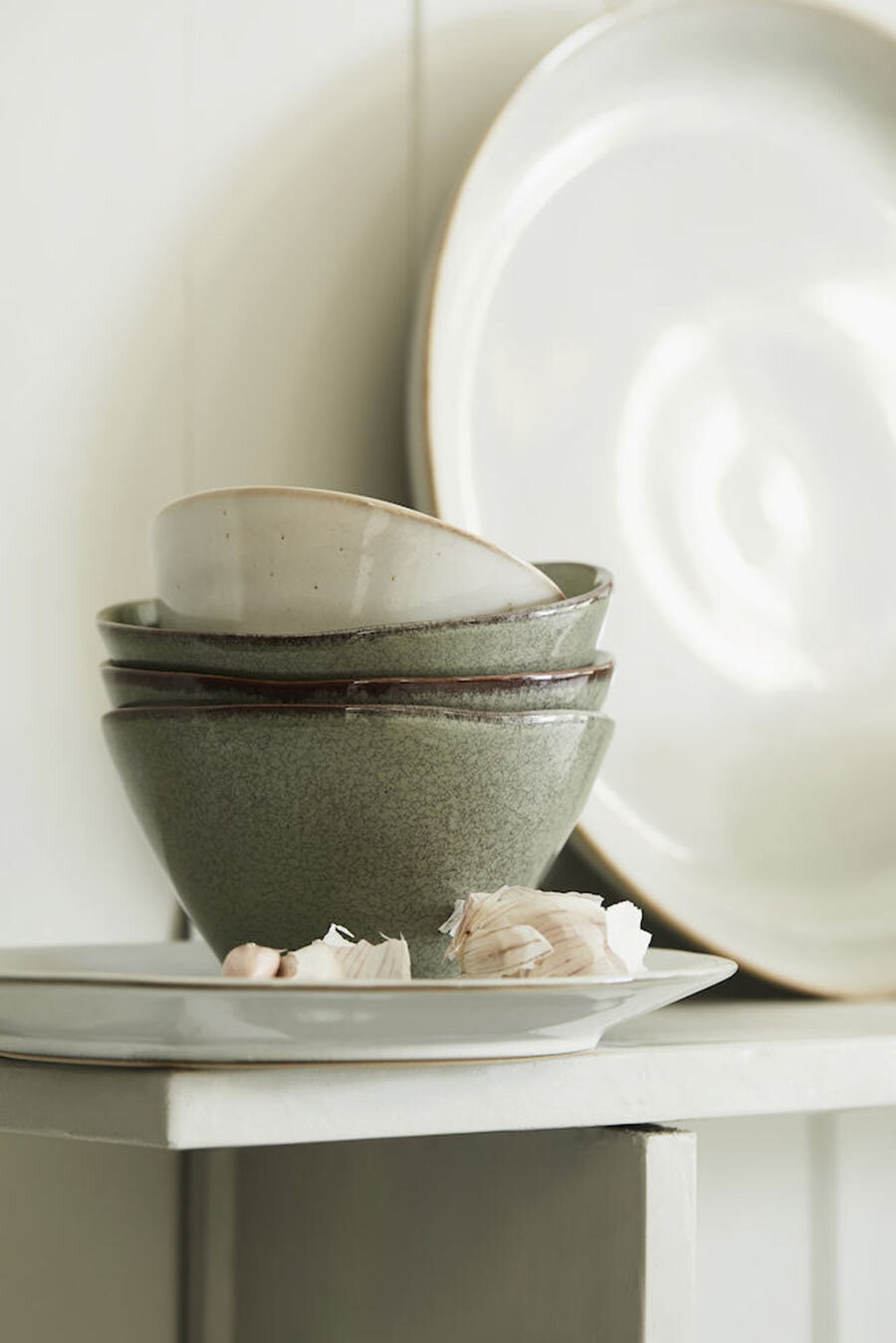Nature系列中,除了採用橡木、玻璃及金屬工藝製成外,還有一部分是炻釉彩食器,具有經典的北歐簡約風格,適合每戶家庭在各種場合使用,完美的呈現北歐的生活風格。近年北歐的餐桌上也十分流行使用炻釉系列的餐盤,炻器質地較瓷器堅硬,採用高溫燒制再上釉彩,每個餐盤碗都會有獨一無二的紋路,搭配自然不加修飾的亞麻綠釉彩,讓餐桌饗宴更顯迷人。