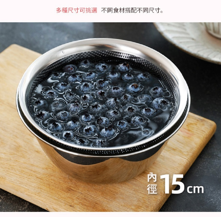 尺寸: [調理盆](約)直徑29x高11.6cm [瀝水盆](約)直徑28.4x高12.2cm 材質:304不鏽鋼 產地:中國 適用於:洗碗機、烘乾機 不可用於:烤箱、微波爐 【使用注意】 1、使用前請用中性洗滌劑和柔軟海綿刷徹底清洗並晾乾,請不要用鋼刷和研磨粉等會造成產品磨損的工具清潔。 2、使用完清洗後,請徹底晾乾再收納起來。 3、不鏽鋼容器不應長時間盛放鹽、醬油、菜湯等酸、鹼類食物,易減短產品使用壽命。 ※尺寸皆為人工測量,誤差±2cm屬正常範圍