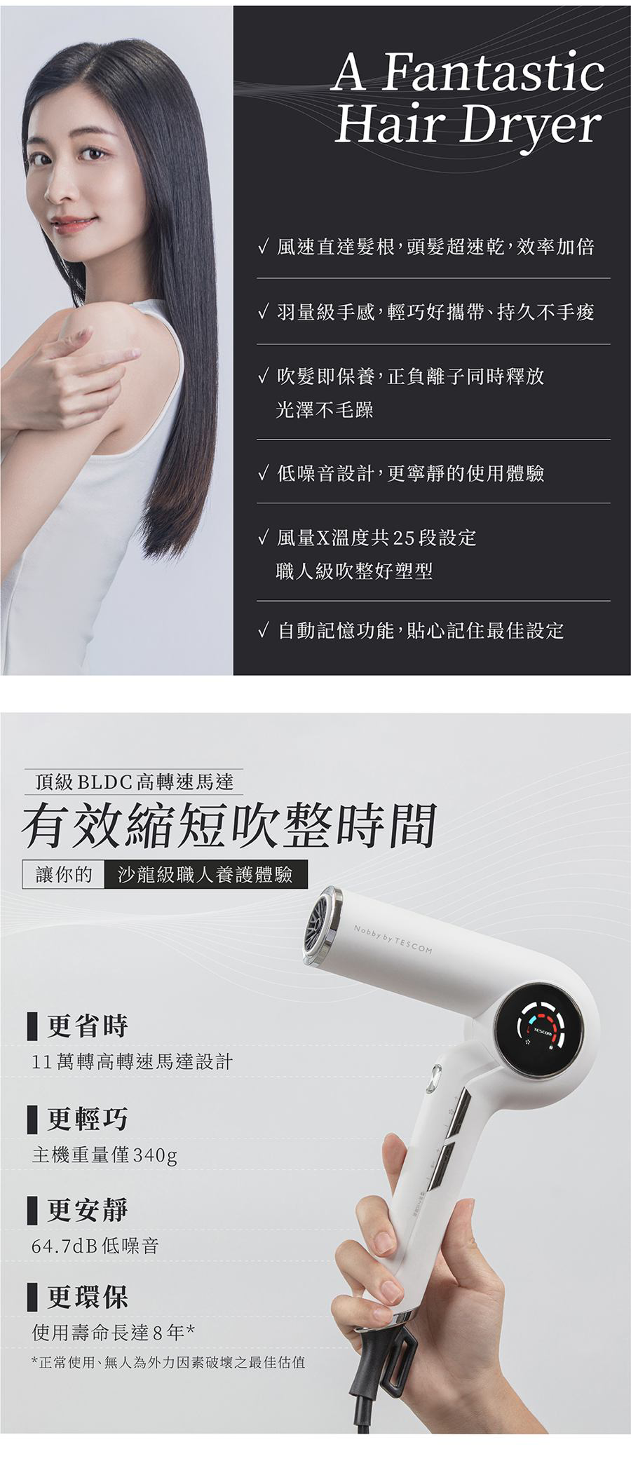 現貨出清84折|日本NOBBY BY TESCOM 專業沙龍修護離子吹風機 NIB3800ATW-月影白