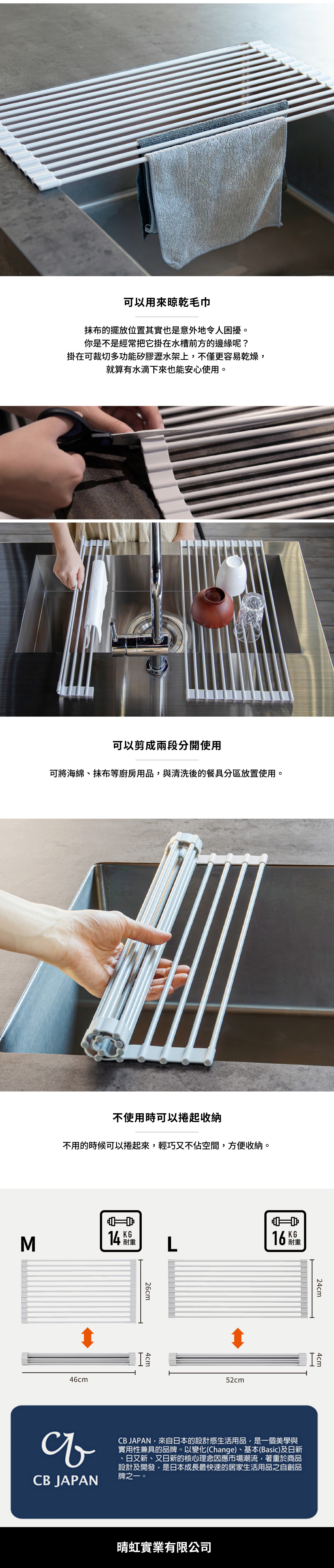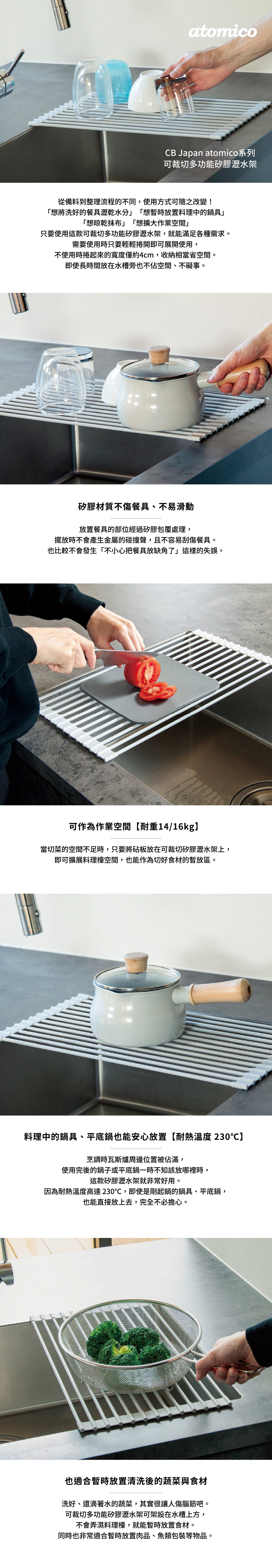 不管是想將清洗後的餐盤瀝乾水分、或是想要擴展料理時的作業空間,以及想在料理途中暫時放置鍋具或蔬菜、晾乾抹布等等,皆非常適合使用。