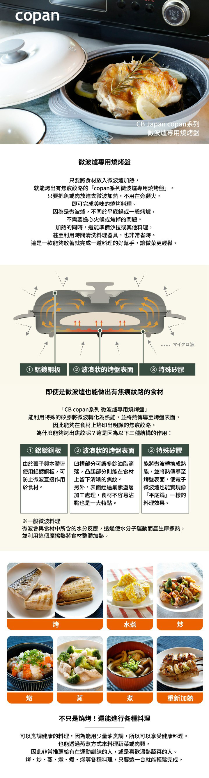 不需預熱,簡單方便,可以在微波加熱的同時一起準備其他料理。內層為不沾塗層,料理後可使用洗碗機清洗,清洗保養非常簡單輕鬆。