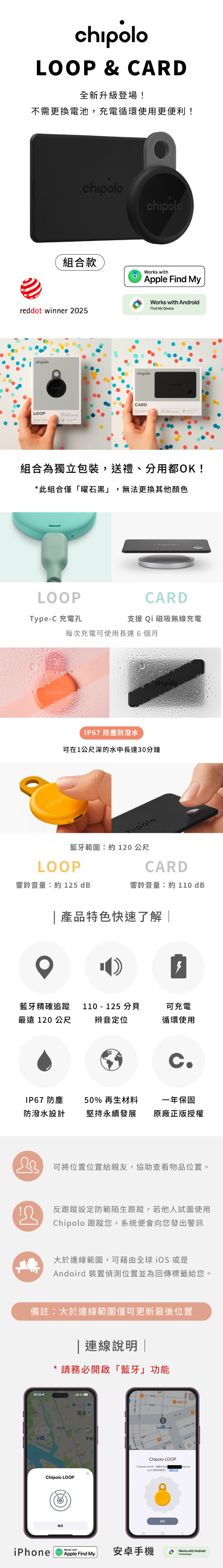 Chipolo LOOP + CARD 充電式藍牙防丟組 ( 圓扣 + 卡片 • 蘋果、安卓兼容 )-曜石黑