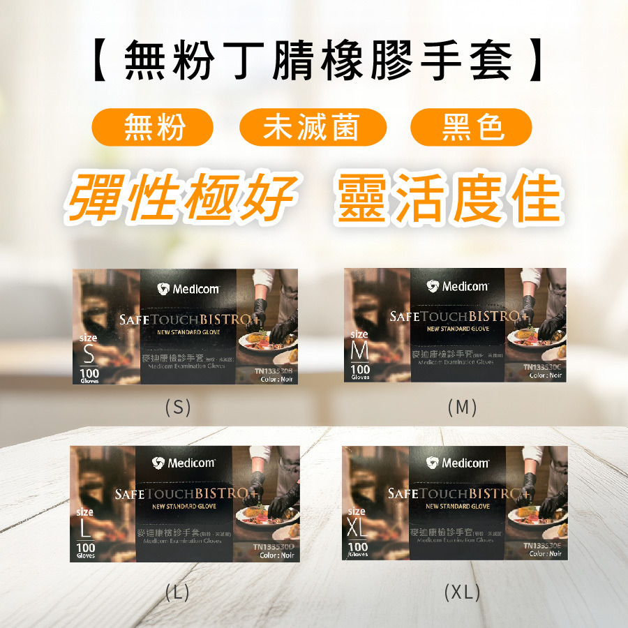 丁腈 黑色無粉橡膠手套 (S/M/L/XL)-共4款