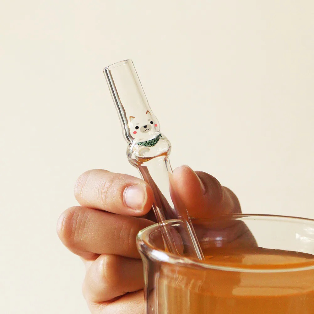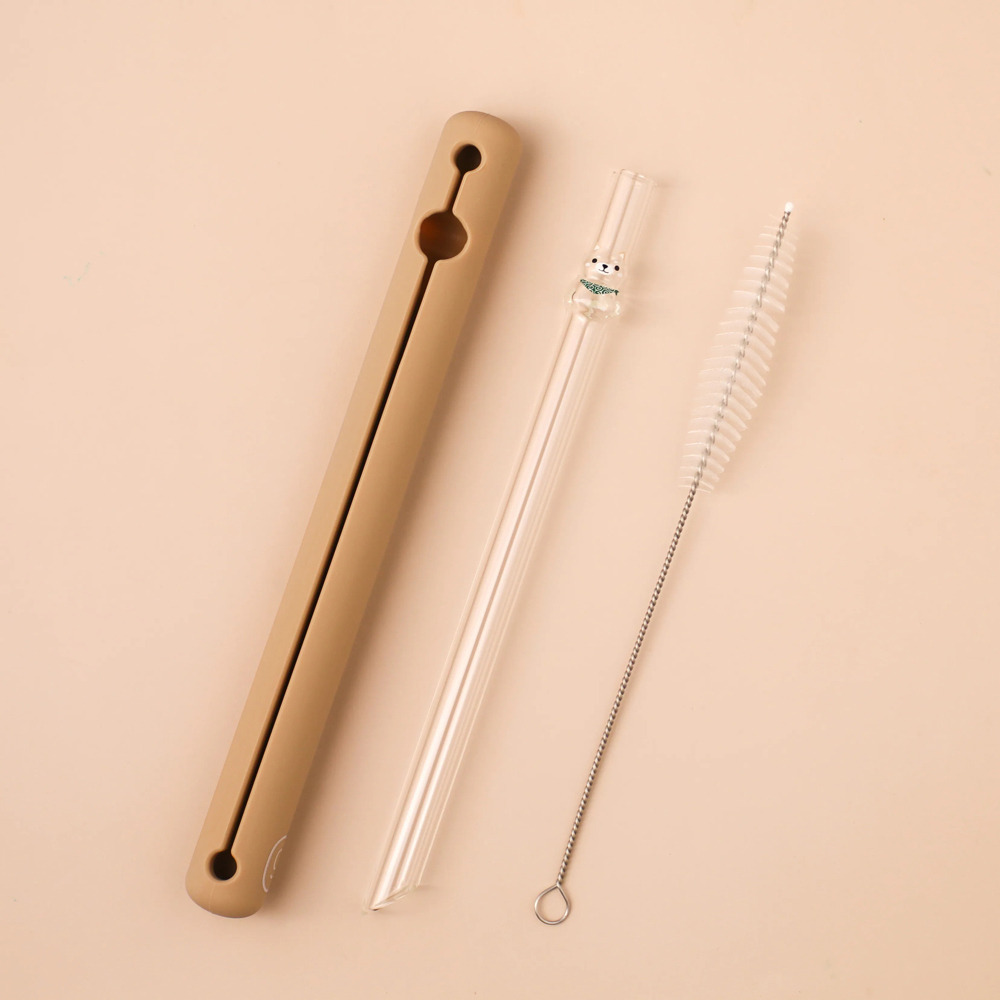 玻璃吸管『斜口』設計,採環保無毒矽膠材質,
