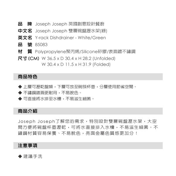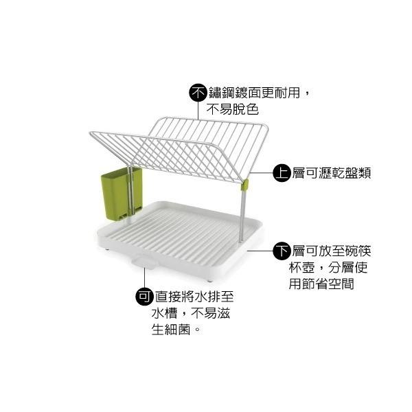 現貨出清68折|Joseph Joseph 雙層碗盤瀝水架(綠)