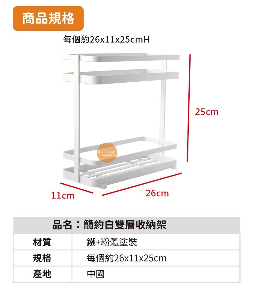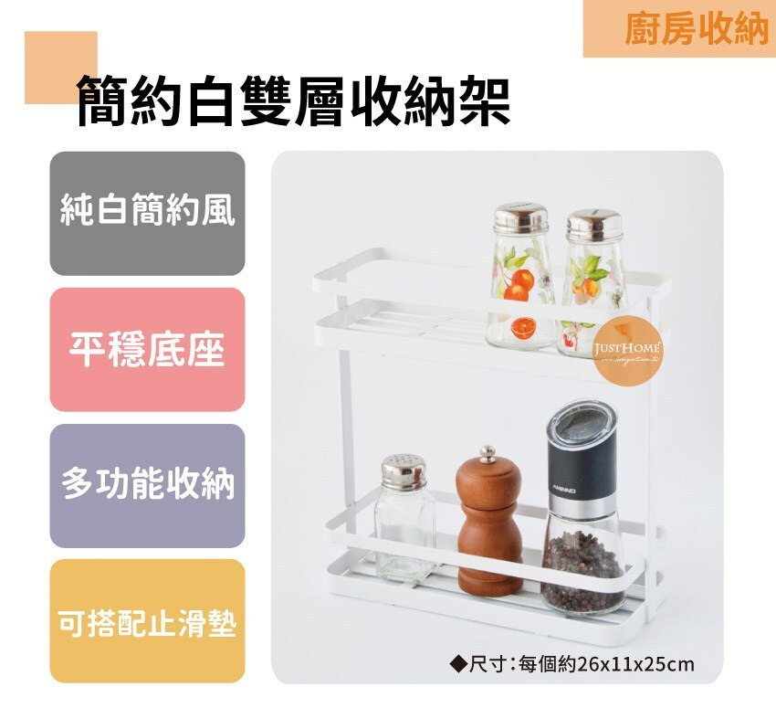 JUST HOME 簡約白雙層收納架