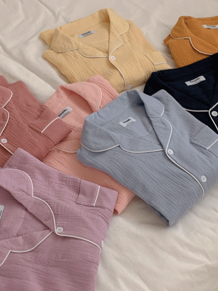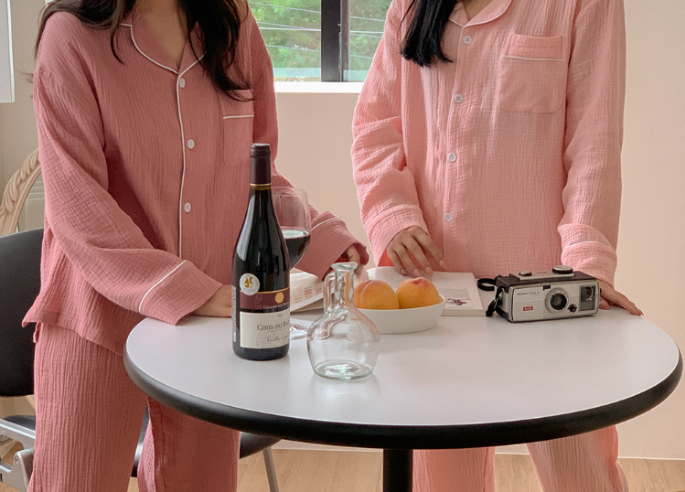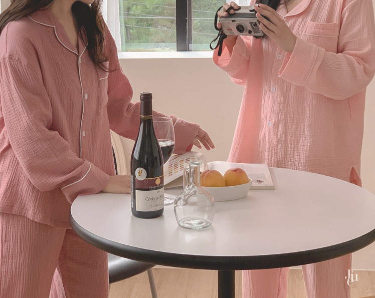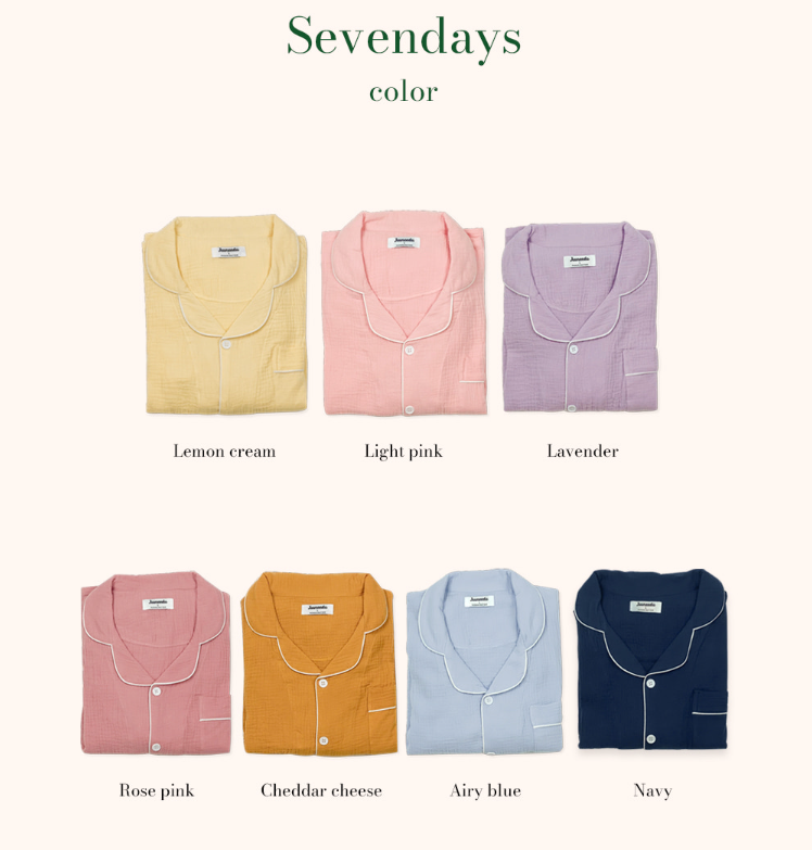現貨出清74折|韓國 JUUNEEDE Seven Days 純棉軟萌泡泡紗長袖睡衣套組 玫瑰粉-L