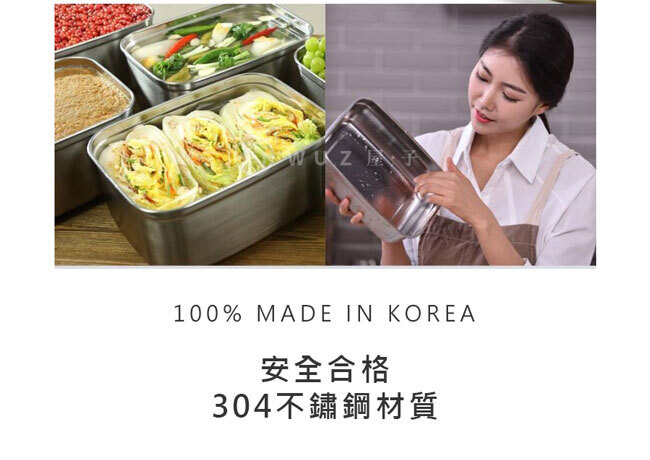 韓國在地設計生產製造,保鮮盒主體採用安全合格的304不鏽鋼製成,耐酸鹼無異味,同時抗摔、輕量好攜帶。