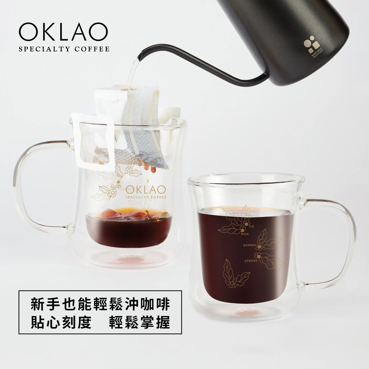 歐客佬 雙層隔熱掛耳專用 耐熱玻璃杯 350ml