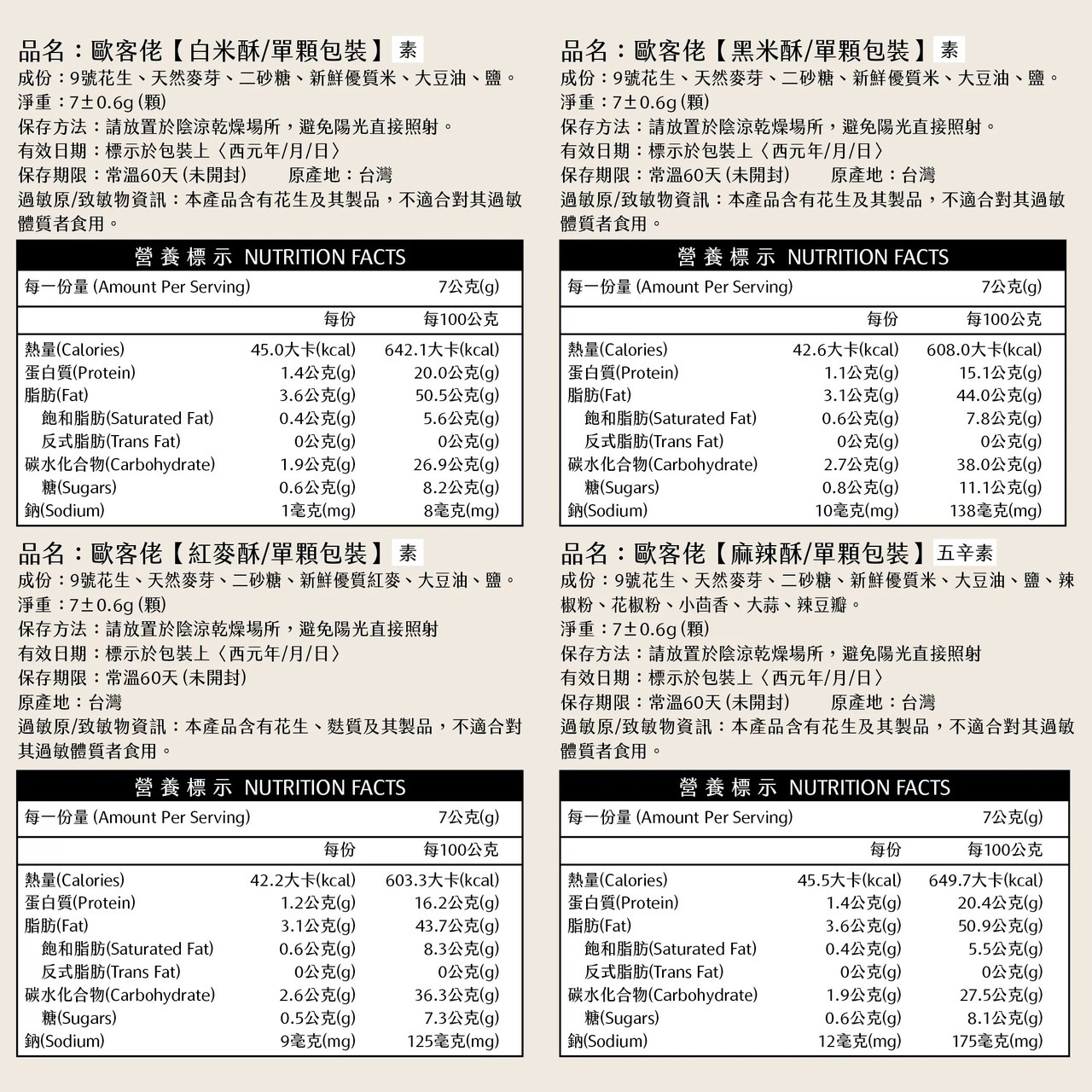米香花生一口酥-麻辣 五辛素(單顆包裝)