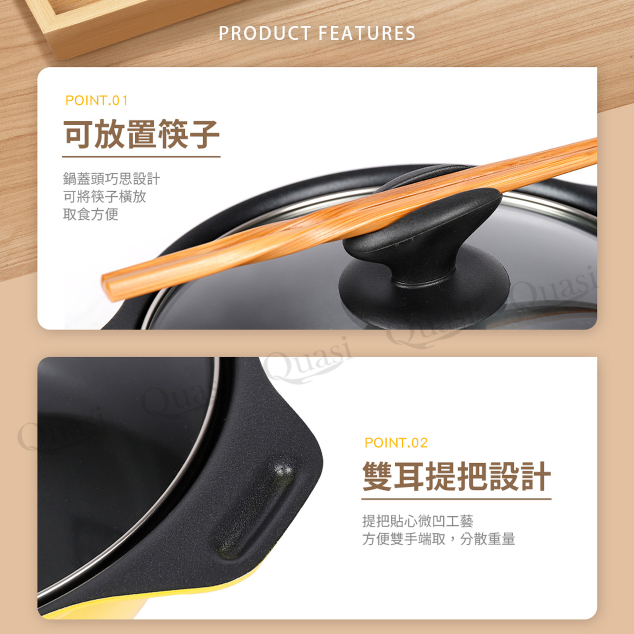 -鍋蓋頭特殊設計,可放置筷子