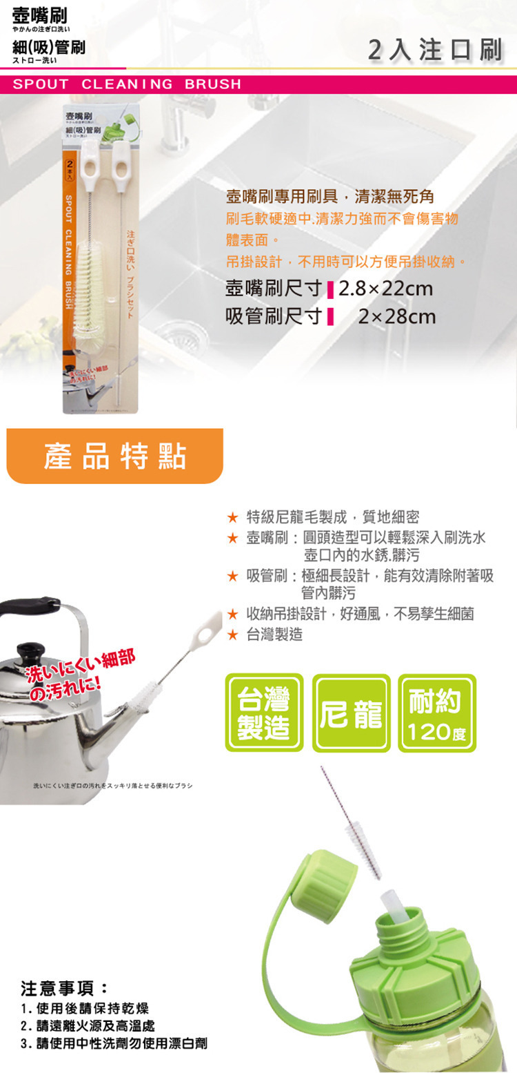 規格:壺嘴刷:22 × 2.8cm / 吸管刷:28 × 2cm