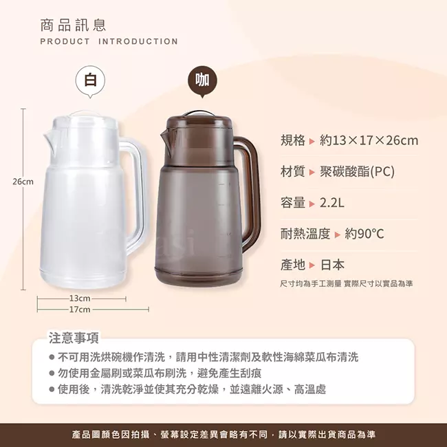 絕版出清|日本製輕量耐摔冷水壺2.2L-共2色