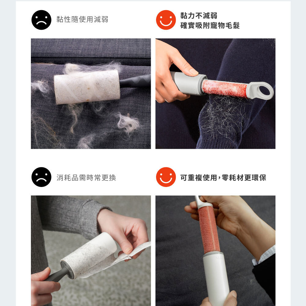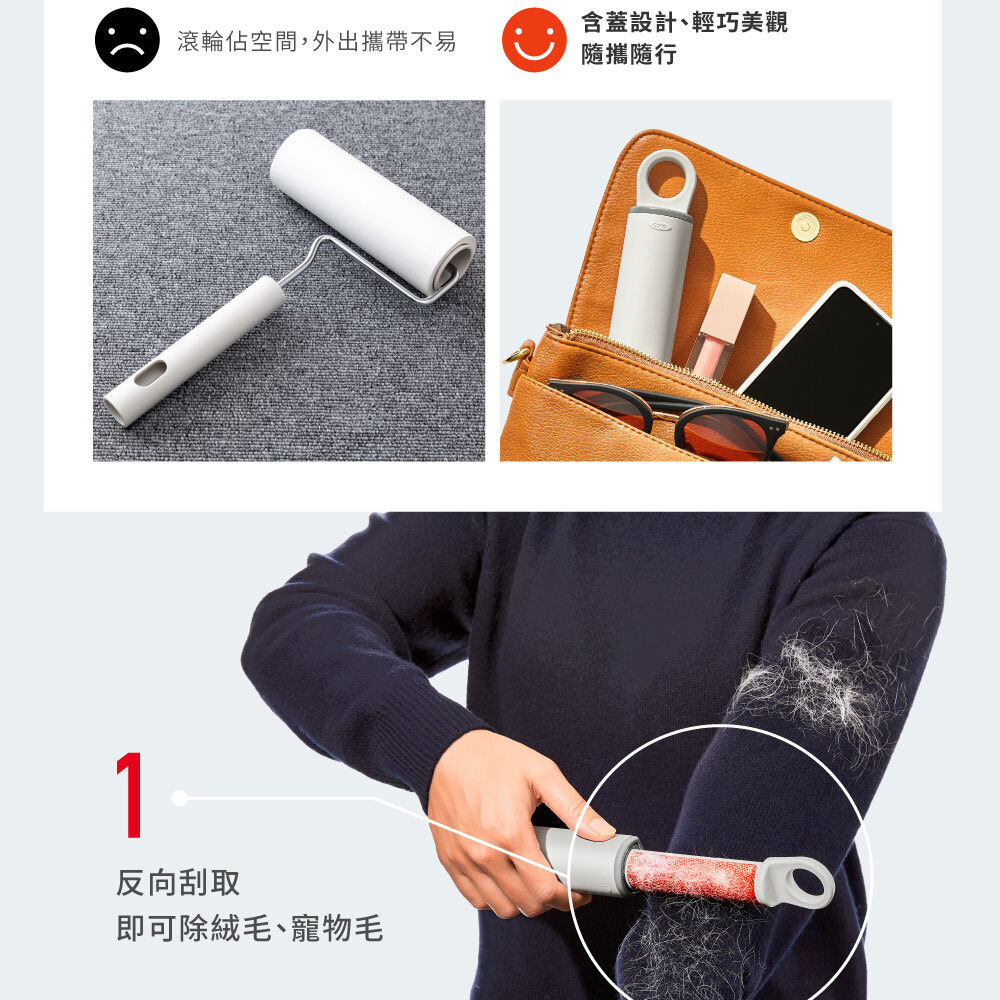 使用時反向刮取, 即可靜電刮取絨毛和寵物毛
