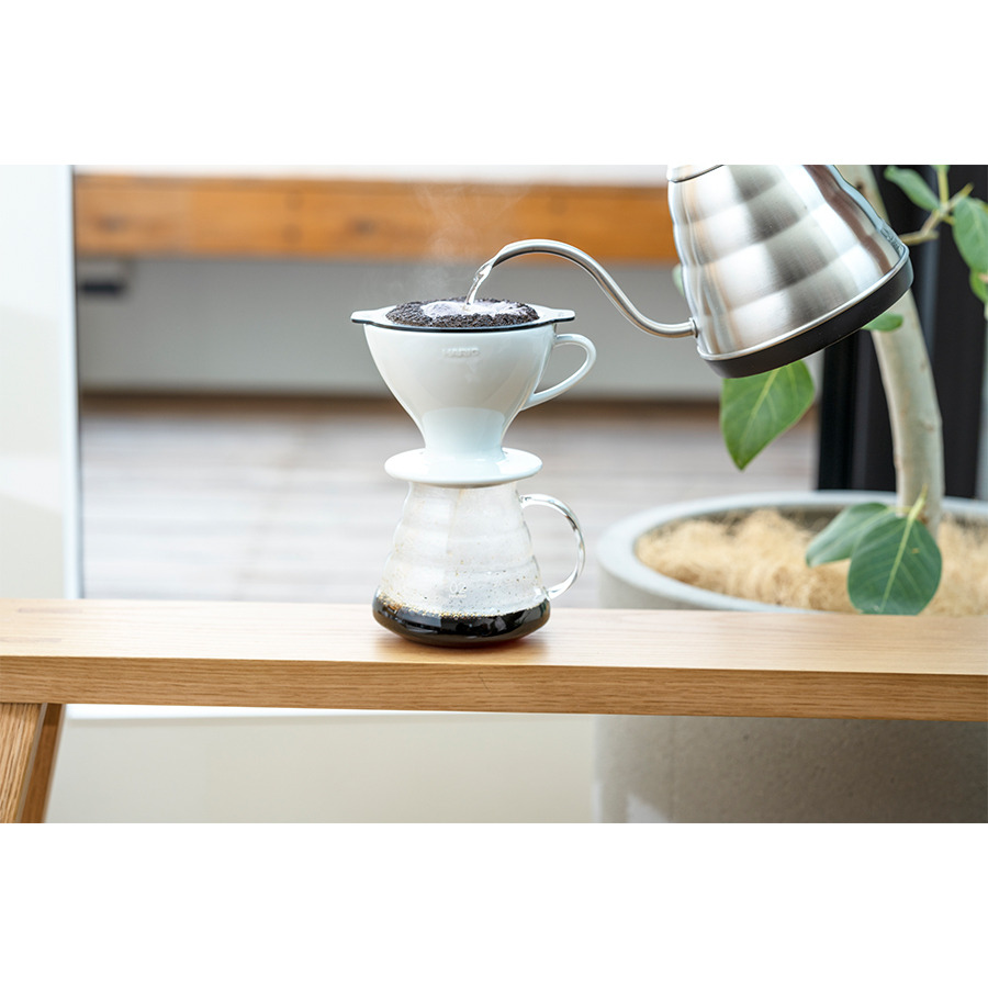 三種沖泡方式 Ⅰ.放入濾紙,品嚐如同以往V60咖啡的美味。 Ⅱ.使用平底濾網,充分帶出咖啡油脂的香醇。 Ⅲ.濾紙+平底濾網 ,追求乾淨清爽口感