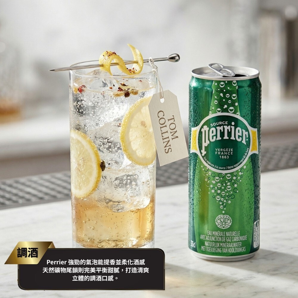 Perrier 合法報關平行輸入 氣泡礦泉水 – 鋁罐裝( 330 ml × 24 入 / 箱 )