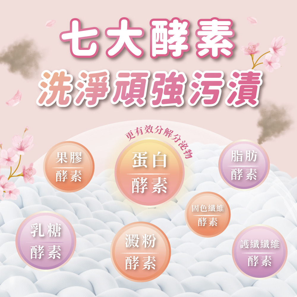 -7大酵素洗淨頑強污漬,更加強蛋白酵素,分解分泌物污漬更有效!