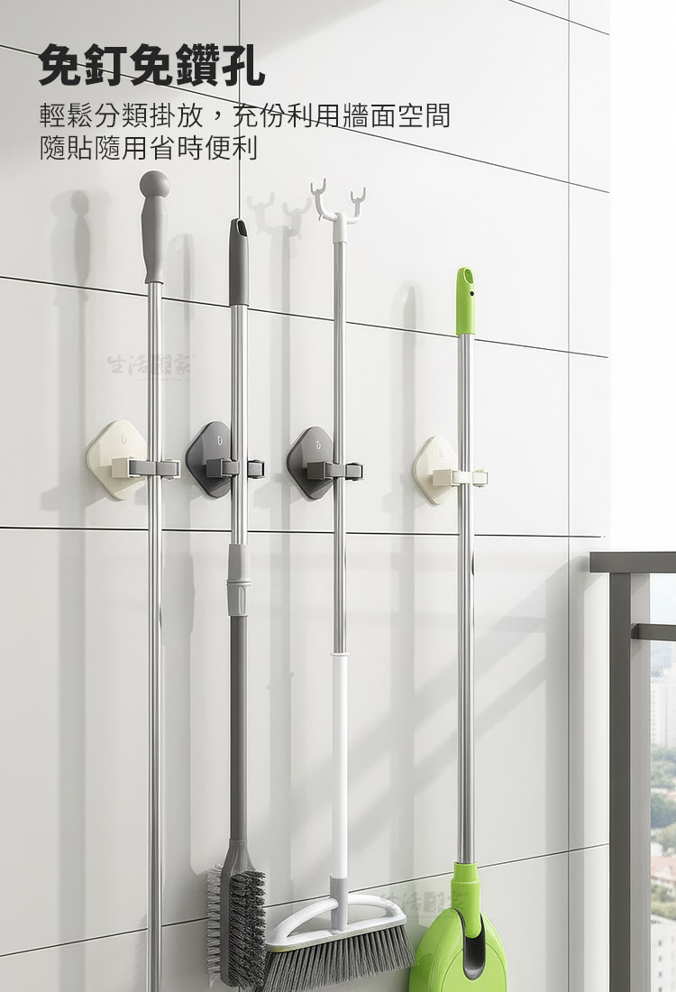 7.商品:免打孔壁掛掃除拖把架*1、貼片*1
