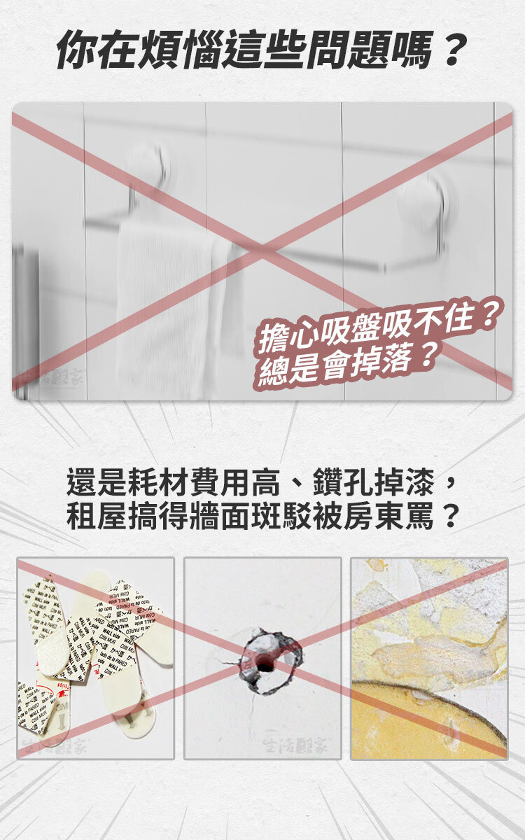 2.貼上後請用力擠出背膠內的空氣,並靜置12小時後再掛物。