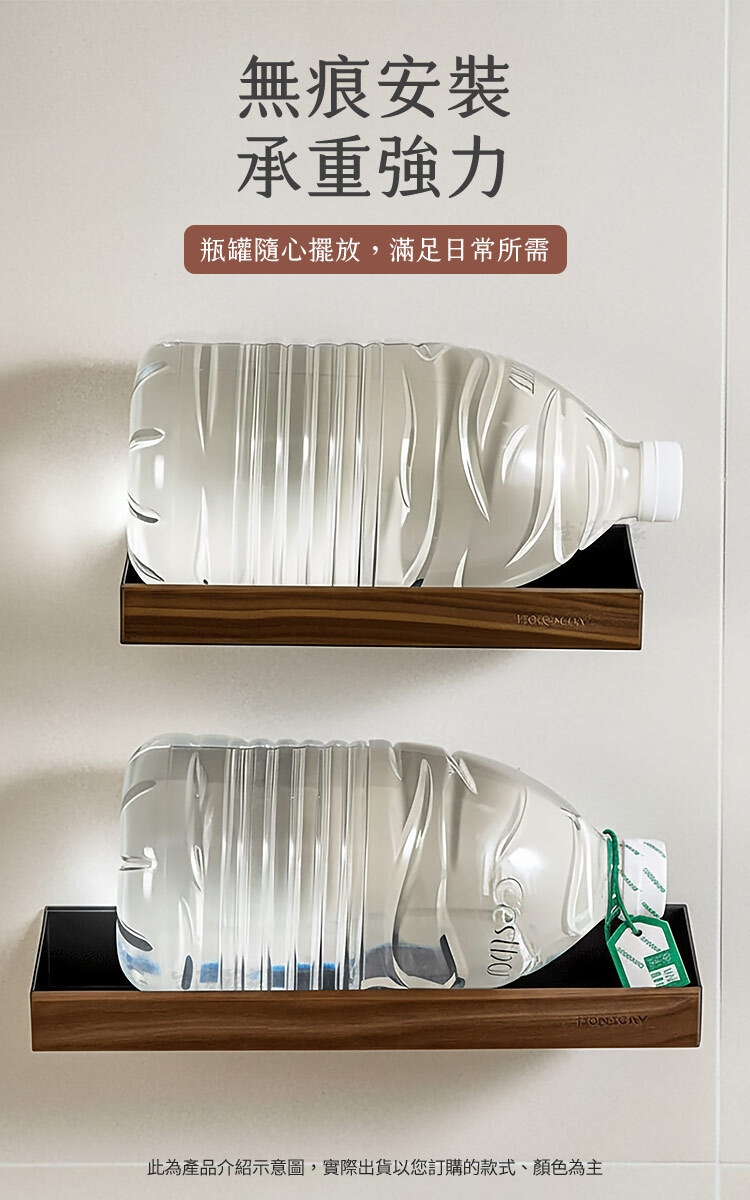 ․安裝後極度穩固,按壓不搖晃,承重力經測試可輕鬆放置多瓶大容量水瓶,滿足您日常所有收納需求。