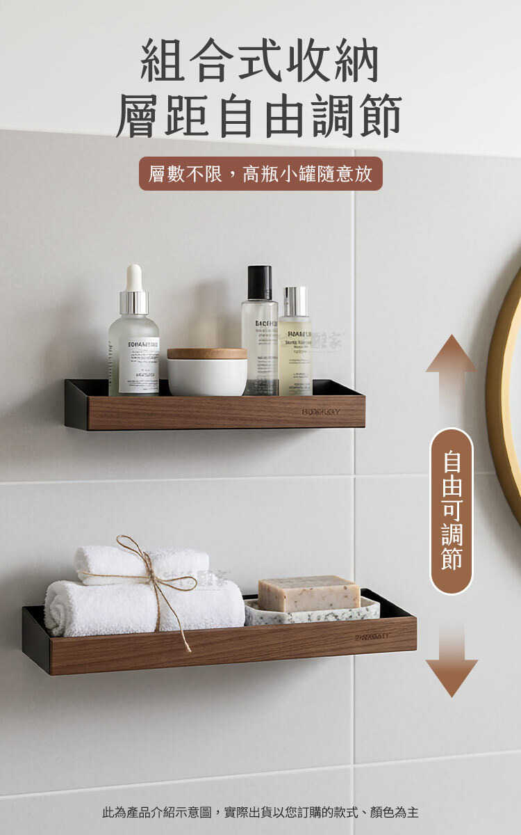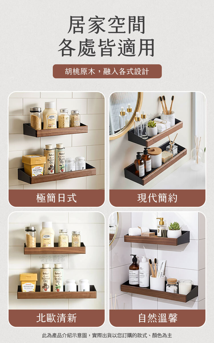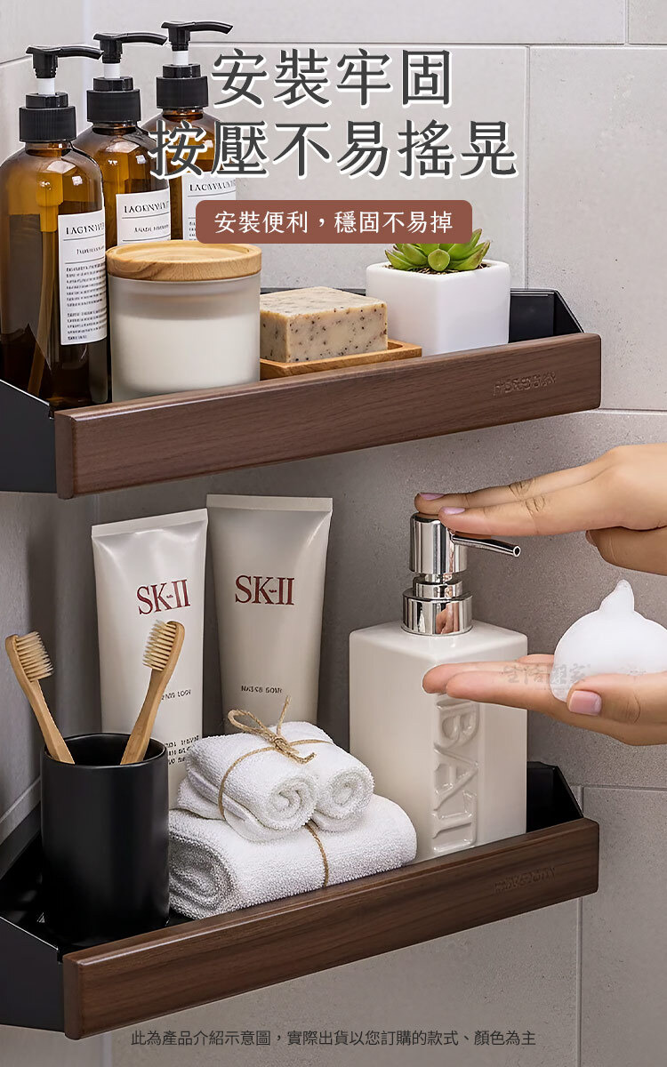 您是否厭倦了浴室瓶罐凌亂、廚房檯面空間不足的困擾?總是在尋找一款既能防水防潮、承重力強,又能完美融入家居設計的收納好物?我們的 【生活采家】免打孔黑胡桃木收納置物架,正是為了解決現代居家收納痛點而生。它不僅是個置物架,更是您品味生活的體現。