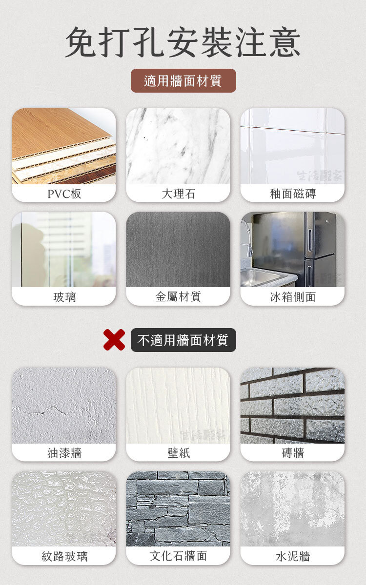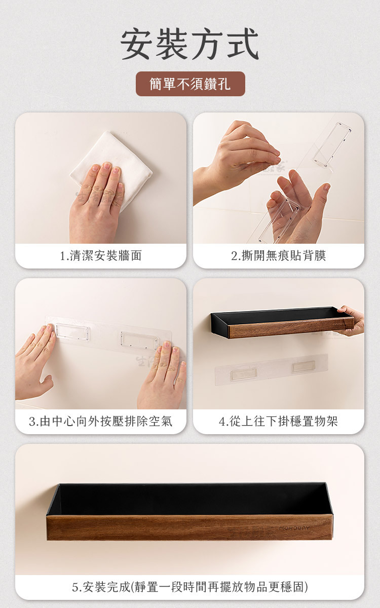 ․採用新一代 強力無痕貼 安裝,步驟簡單,無需鑽孔,不破壞牆面。