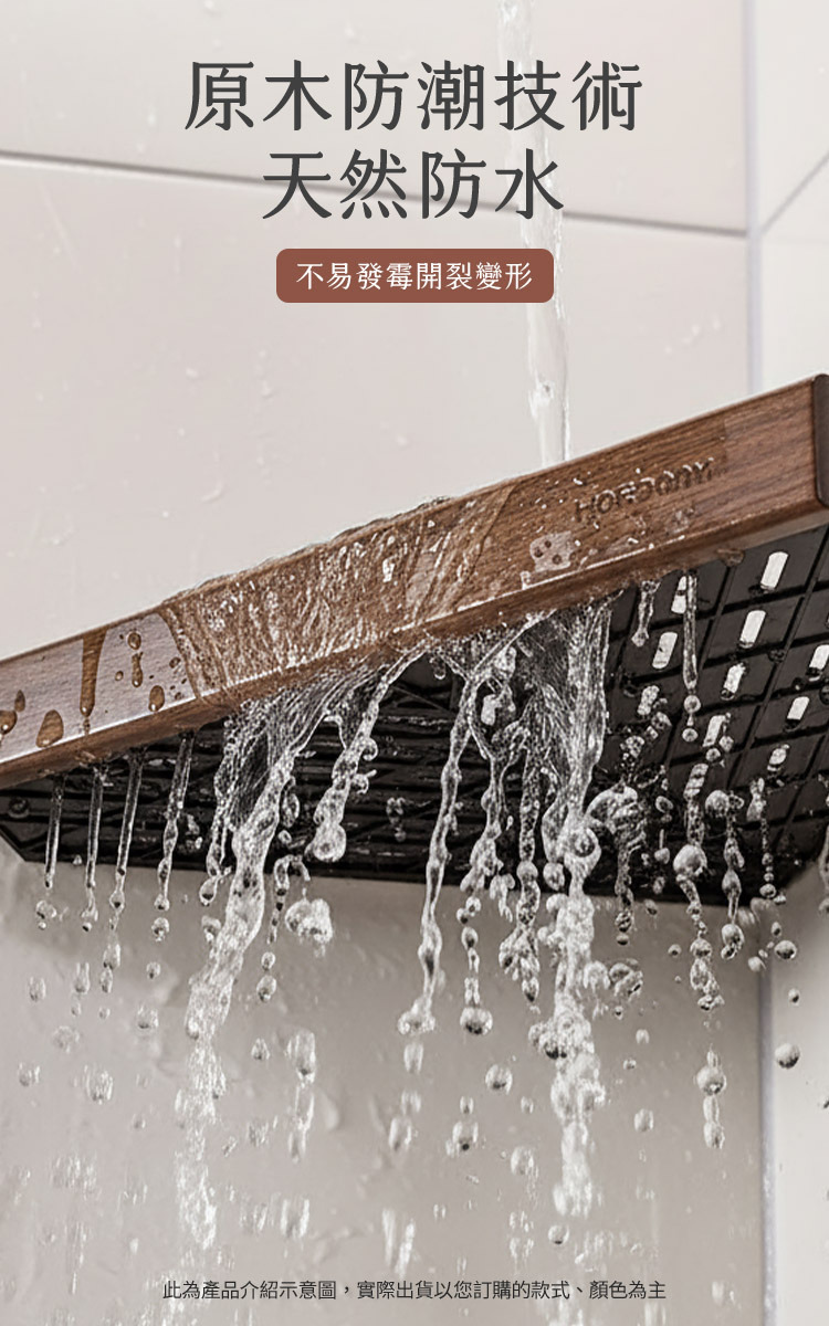 ․採用優質 黑胡桃木,搭配特殊的 原木防潮技術,達到天然防水效果。即使長期置於潮濕的浴室,也不易發霉、開裂或變形。