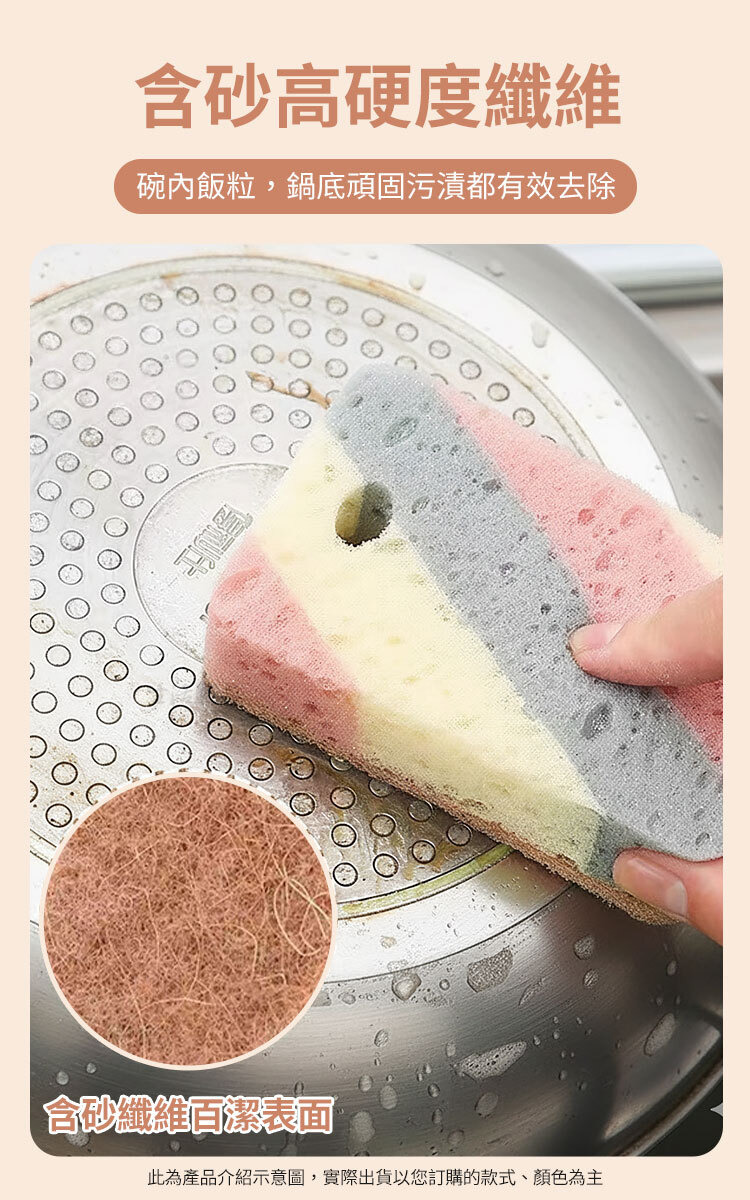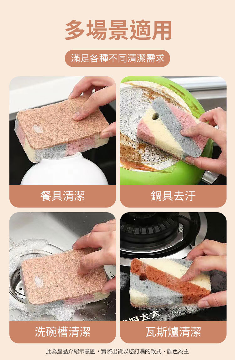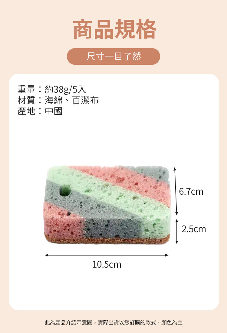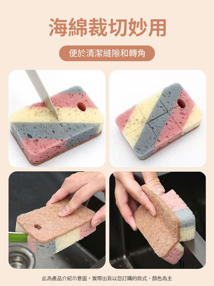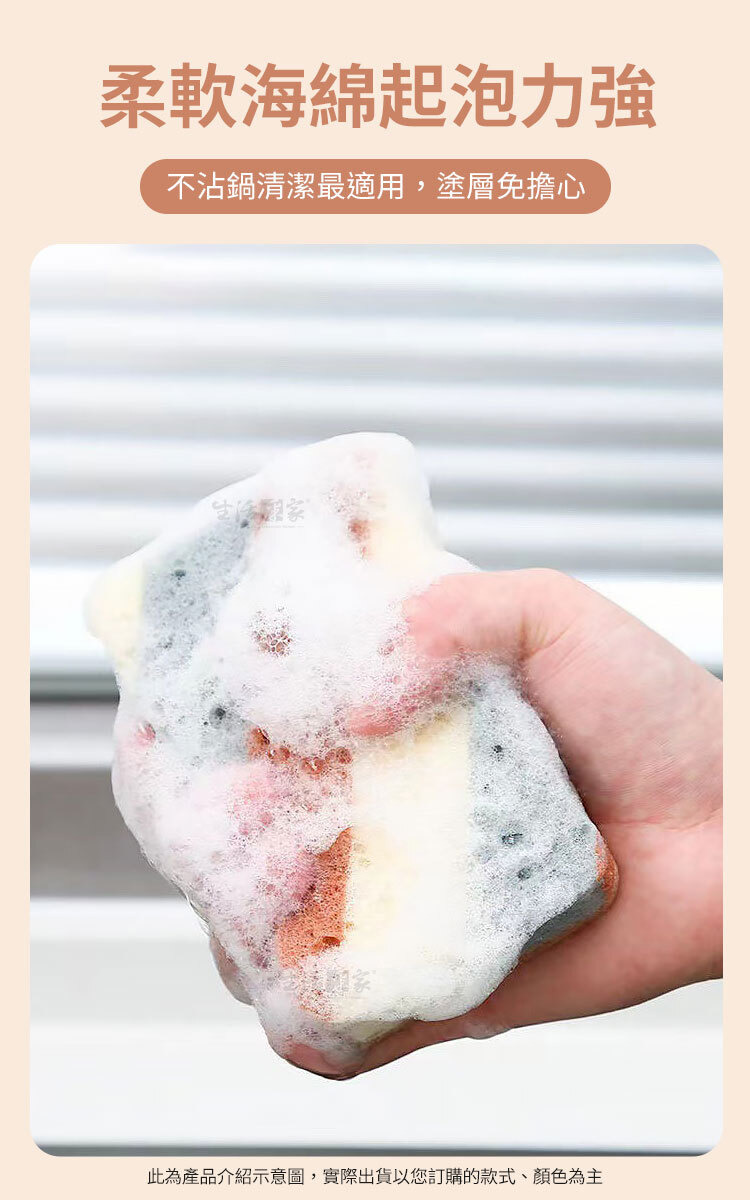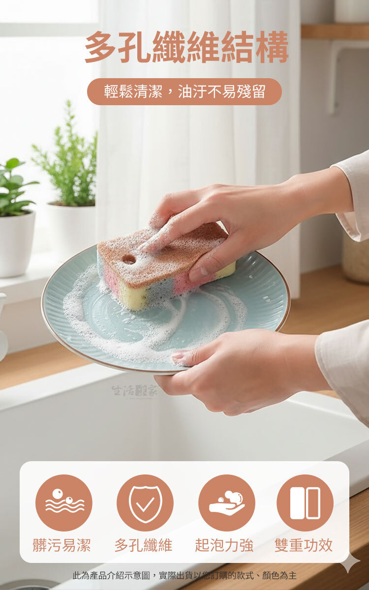 ✅ 雙面結構設計:上層百潔布強效去除頑固汙垢,下層海藻海綿高泡吸附力強,雙重功效一次到位。