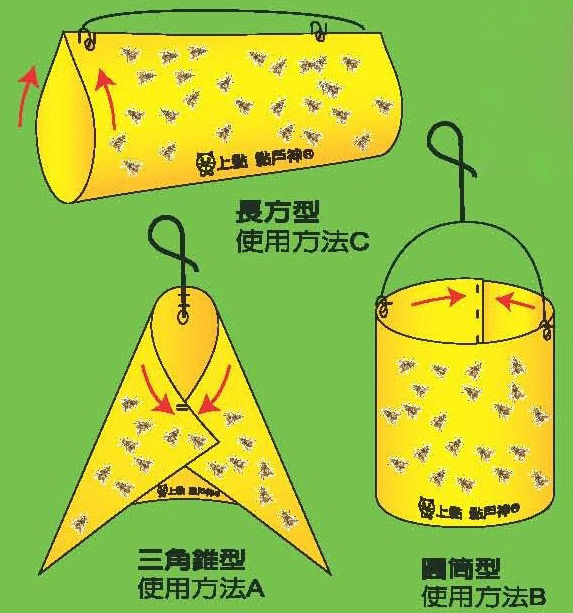 3.上黏黏戶神板兩面沾滿90%以上之蒼蠅、害蟲之後便可丟入垃圾桶,方便又衛生。