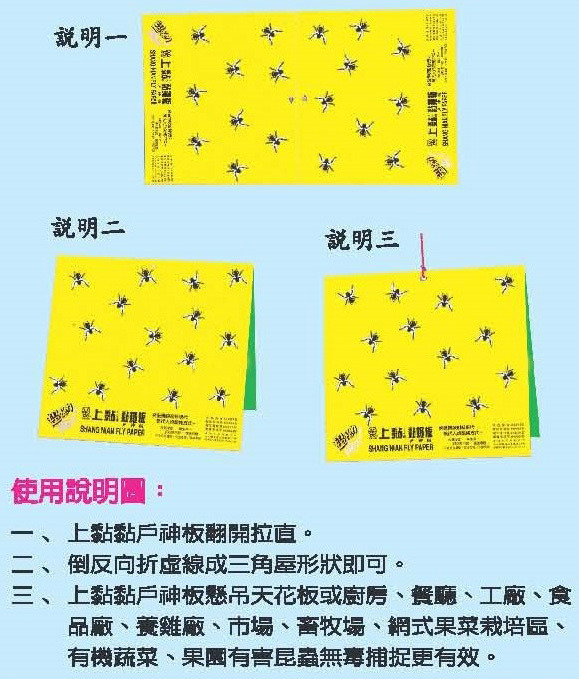 6.因黏蠅板十分具有黏性,故在折疊成形之後放置於小孩、寵物不易觸碰到的地方。